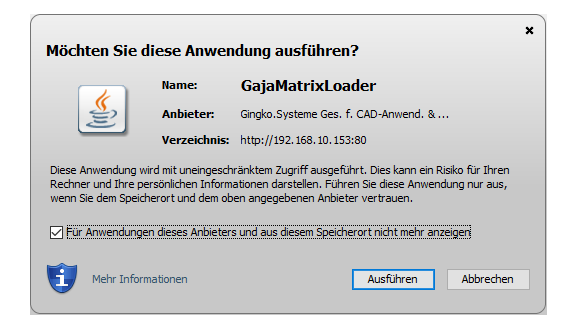 - Ab JDK 11 ist der WebStart nicht mehr verfügbar. Aus diesem Grunde bietet GajaMatrix nun einen neuen Clientinstaller an. Nach dem einmaligen Neuinstallieren ist das Verhalten für den Nutzer analog der vorherigen Technologie.