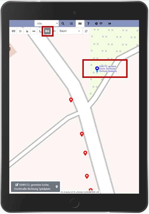 Bereits kartierte Objekte können nun nachträglich in der mobilen Anwendung gemeinsam mit ihren Sachdateninhalten verschoben werden.