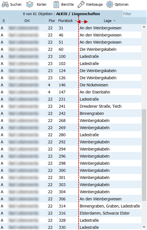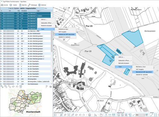 Maßnahmen bzgl. der Flurstücke ein / ausgeblendet werden. Ebenfalls bleibt nun die Basisgeometrie